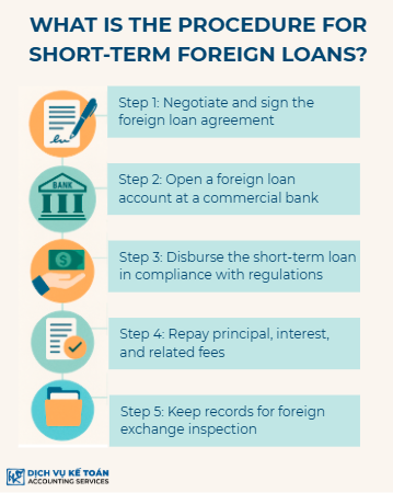 To ensure a short-term foreign loan is carried out legally and transparently, enterprises must strictly follow the procedures issued by the State Bank of Vietnam (SBV). Below is the standard 5-step process:
