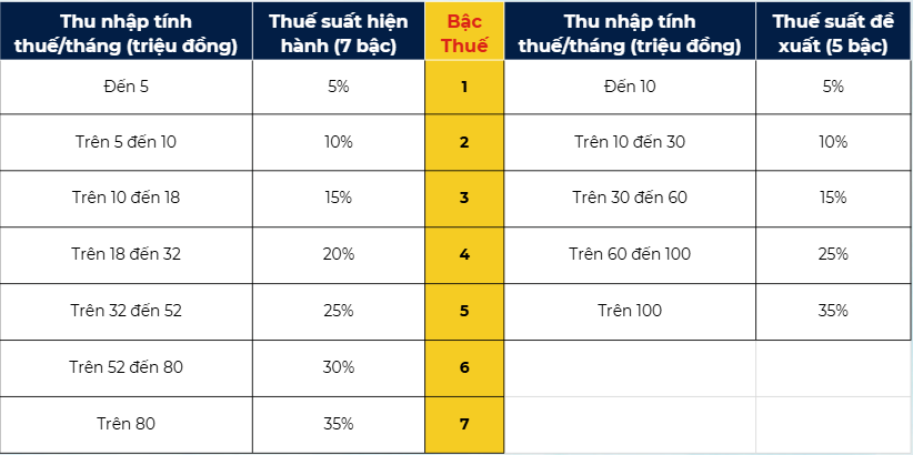 - Significance of Shortening: The reduction in tax brackets clearly benefits the group with Taxable Income (TNTT) from 10 million to 60 million VND/month. This group will apply a lower tax rate to a portion of their income compared to the current 7-bracket schedule. For example, an individual with TNTT of 35 million VND will be subject to a 15% tax rate on the portion above 30 million, instead of the previous 20%. This creates a positive shift, easing the tax burden on the middle class and strengthening the equity of the tax system.